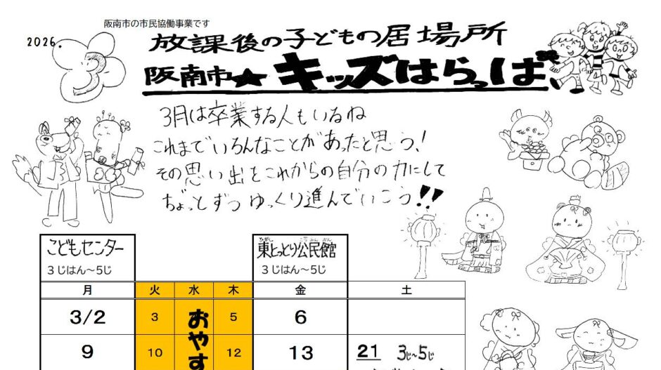 「阪南市☆キッズはらっぱ」2026年3月号を発行しました
