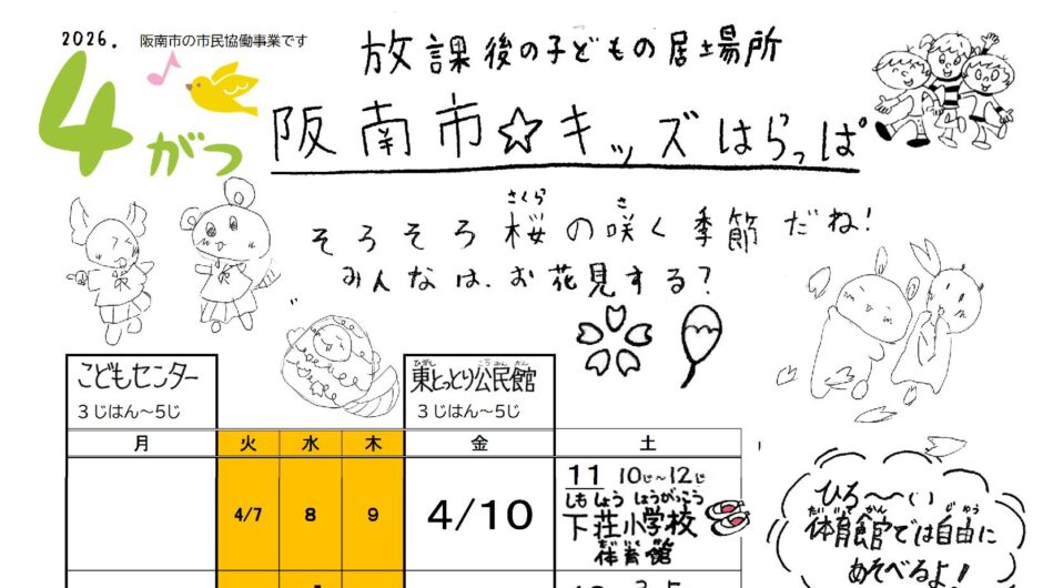 「阪南市☆キッズはらっぱ」2026年4月号を発行しました
